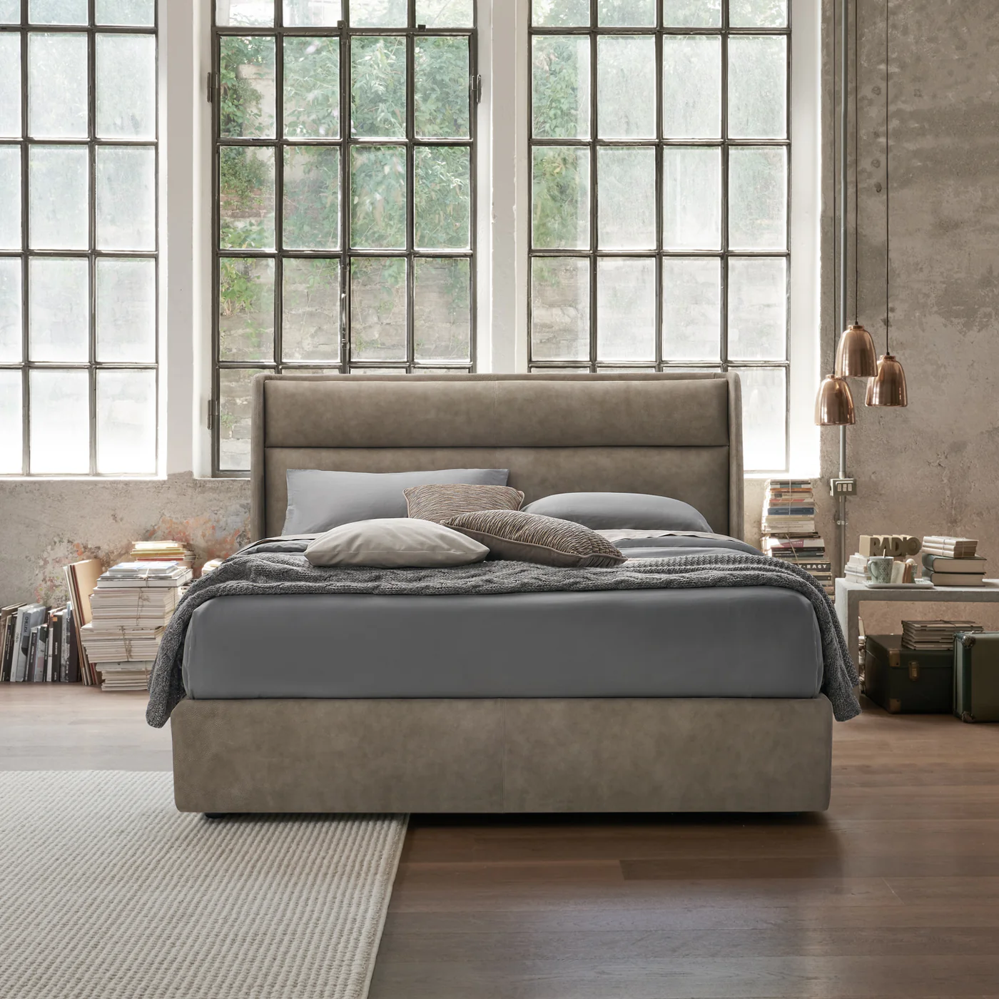 Tăblia înaltă, cu formă ergonomică, oferă sprijin confortabil pentru momentele de relaxare, iar baza solidă garantează stabilitate pe termen lung. Este disponibil în mai multe dimensiuni și categorii de stofă. Acesta oferă posibilitatea de a alege un sistem de pat cu ladă de depozitare pentru funcționalitate suplimentară.