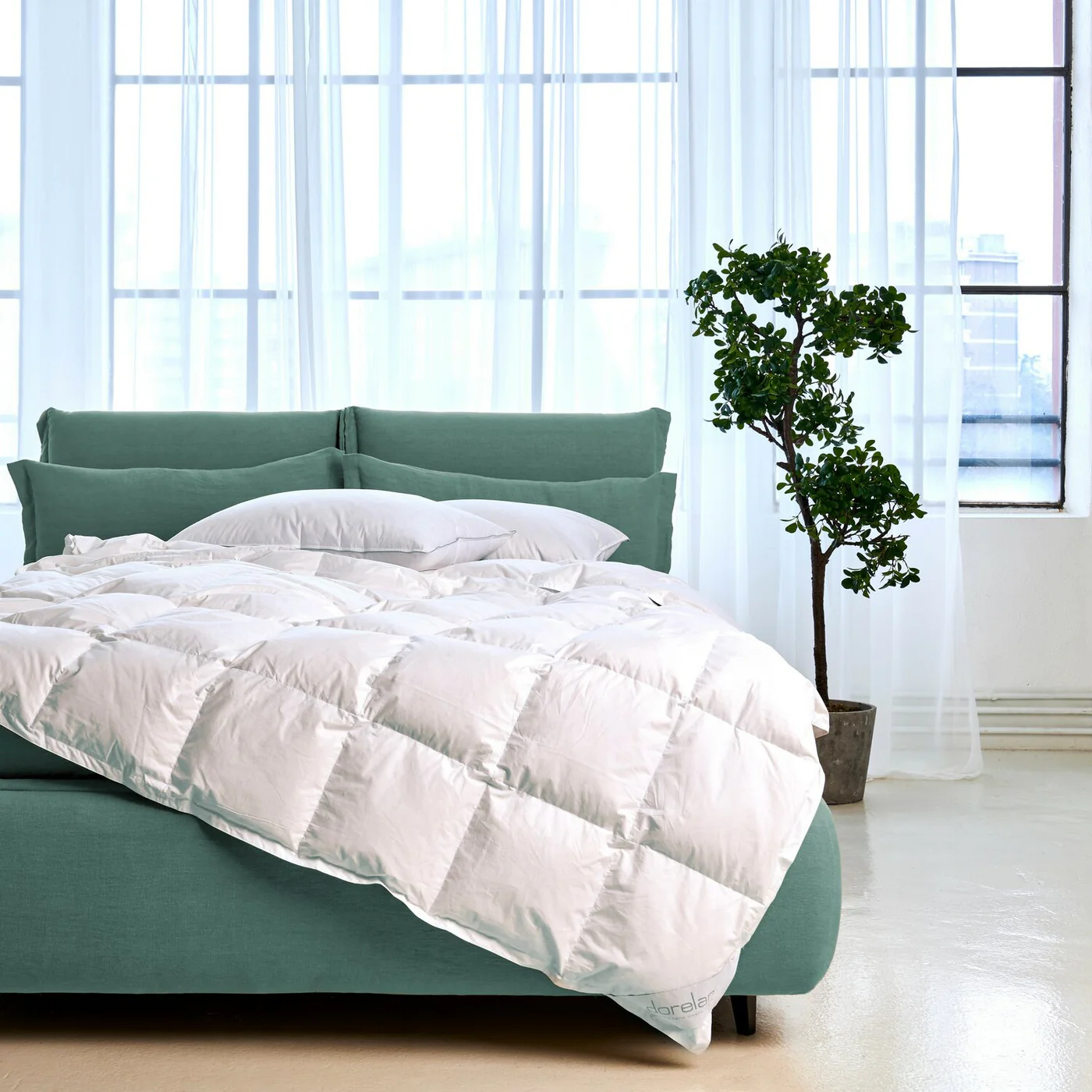 Confort natural din puf și pene: umplutura de 70% fulgi și 30% pene, asigură căldură și o senzație de confort natural, pentru un somn odihnitor.