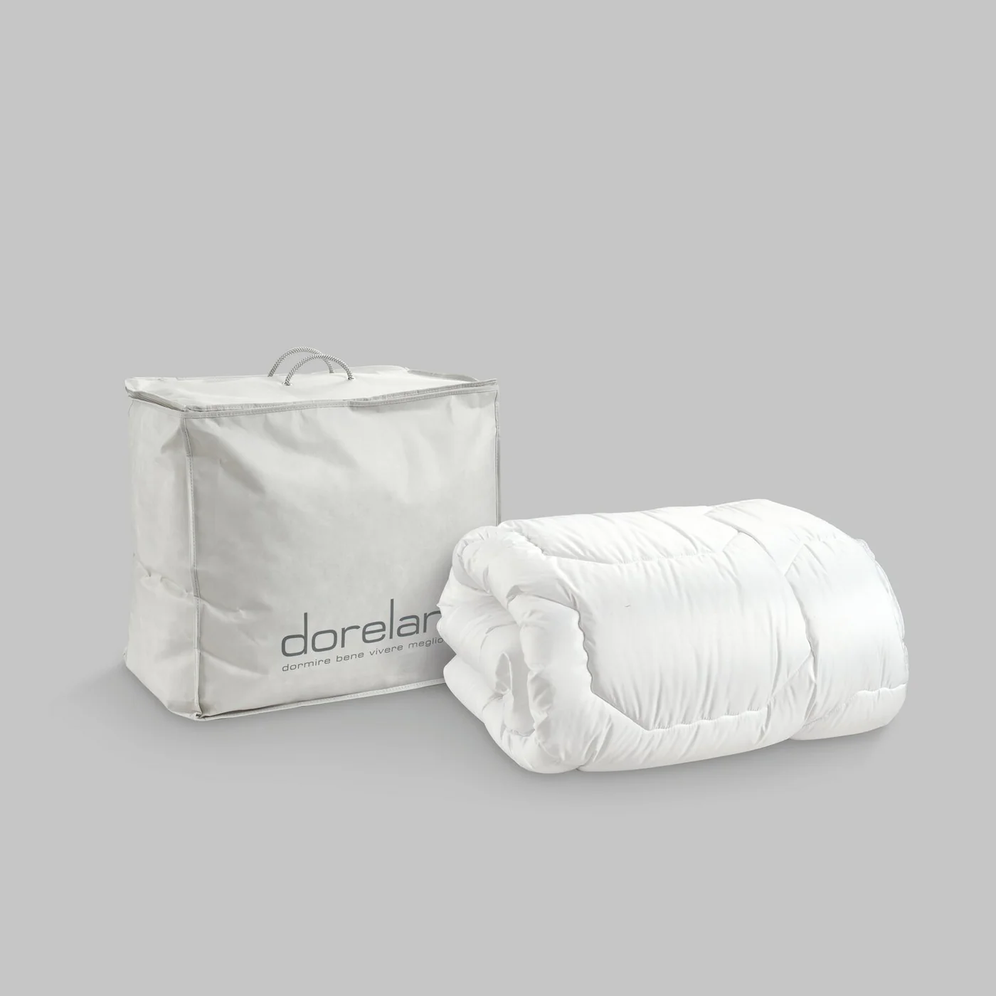 Exteriorul pilotei Myo de la Dorelan este fabricat dintr-un poliester delicat și practic, iar interiorul din fibră de poliester, pentru a asigura căldură și confort excelente. Pilota este confecționată din pătrate cusute individual, pentru a garanta distribuția uniformă a umpluturii, chiar și după spălare.