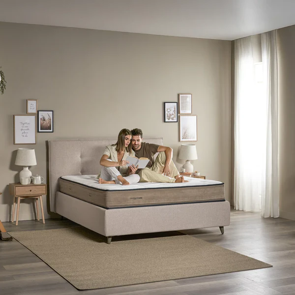 Sistemul de arcuri interconectate DualCore asigură un suport dinamic și continuu, în timp ce umplutura combină bumbac, Ingeo și Myform Air pentru a crea o senzație echilibrată și respirabilă.