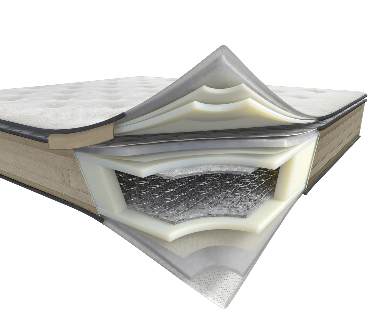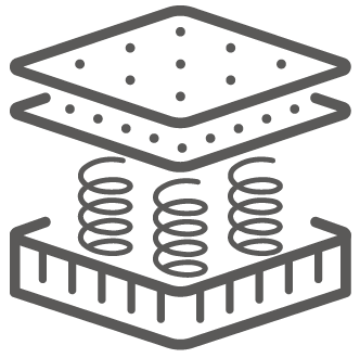 Stratul Myform Memory Air este poziționat pe baza saltelei deasupra arcurilor Dual Core, oferind un răspuns gradual și o reducere eficientă a punctului de presiune.
