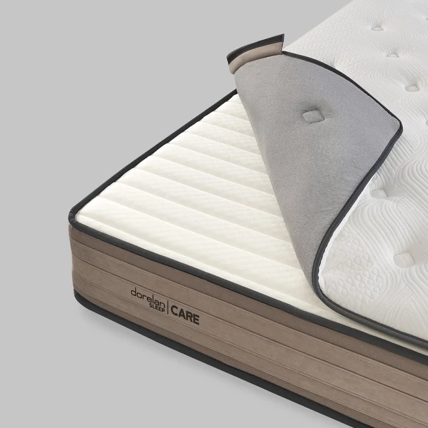 Husa Care Sea este concepută pentru cei care doresc să combine un confort sustenabil cu o gestionare avansată a igienei. Datorită sistemului TopFit, Pillow Topper-ul este detașabil, lavabil și finisat cu un material textil din fibre reciclate, umplut cu bumbac, Ingeo și Myform Air pentru un microclimat constant echilibrat. Quilting-ul Capitonné Nest conferă topper-ului eleganță și măiestrie. Tratamentele Fibersan protejează activ împotriva acarienilor și alergenilor. O alegere pentru cei care vor să doarmă bine și să trăiască în armonie cu mediul.